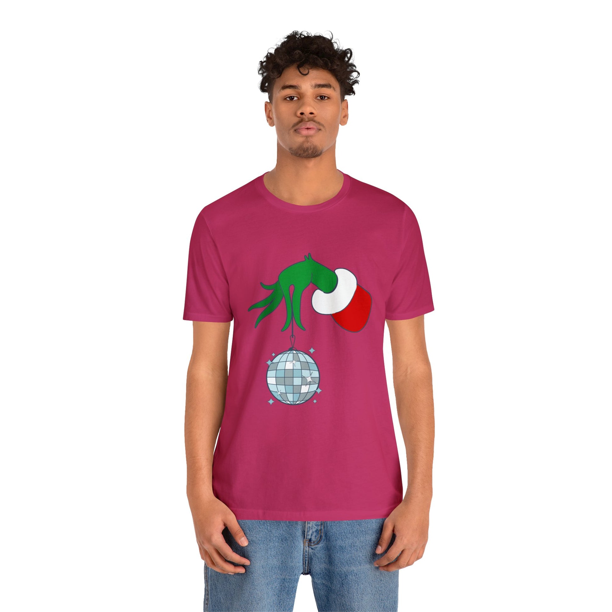 Back design - Grinchy Groovy and Bright Jingle Disco Ball - Unisex T-shirt