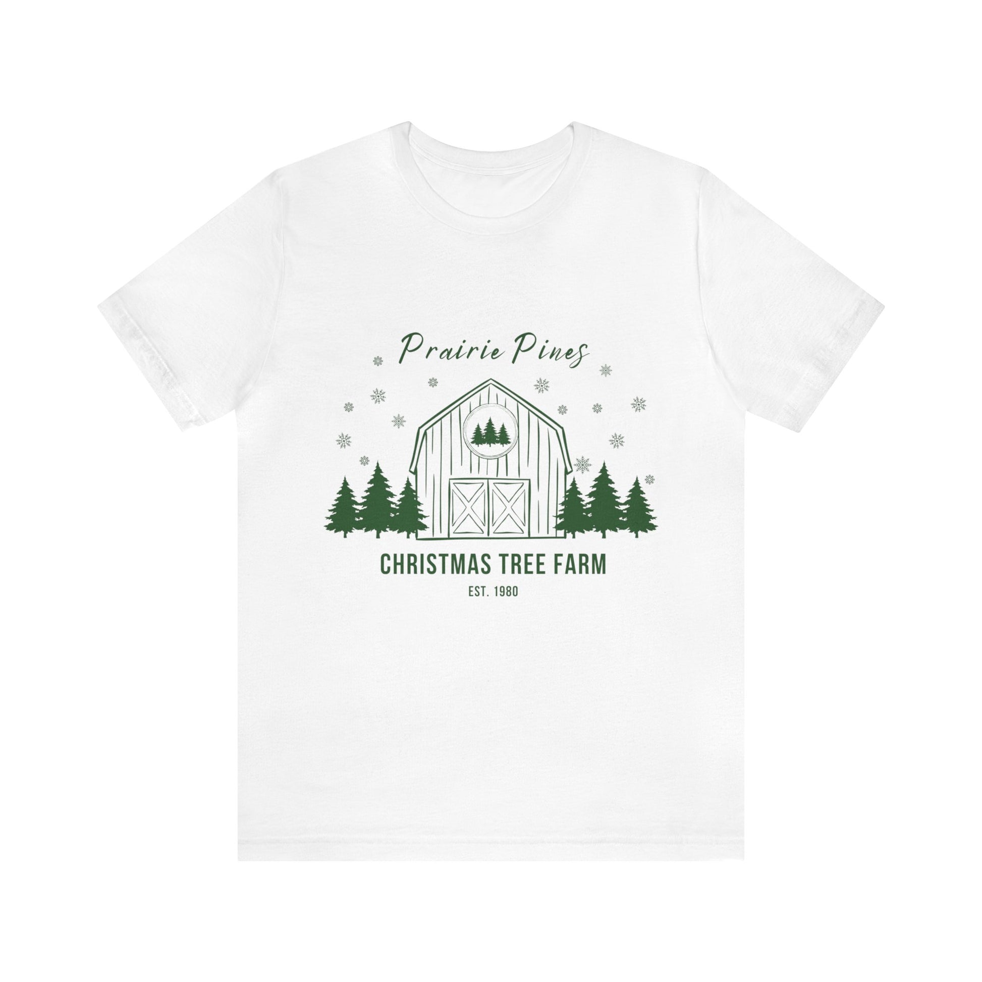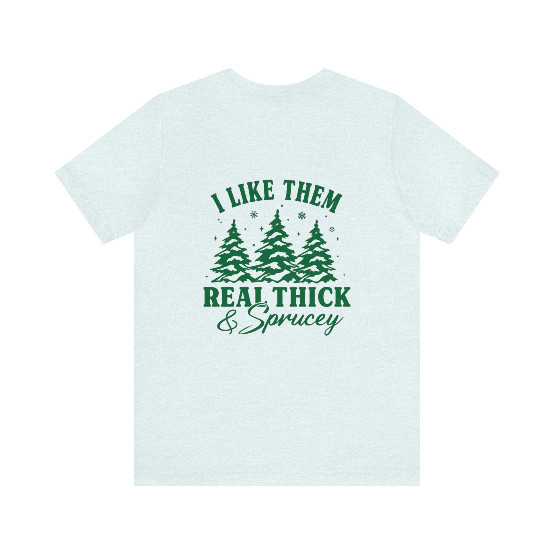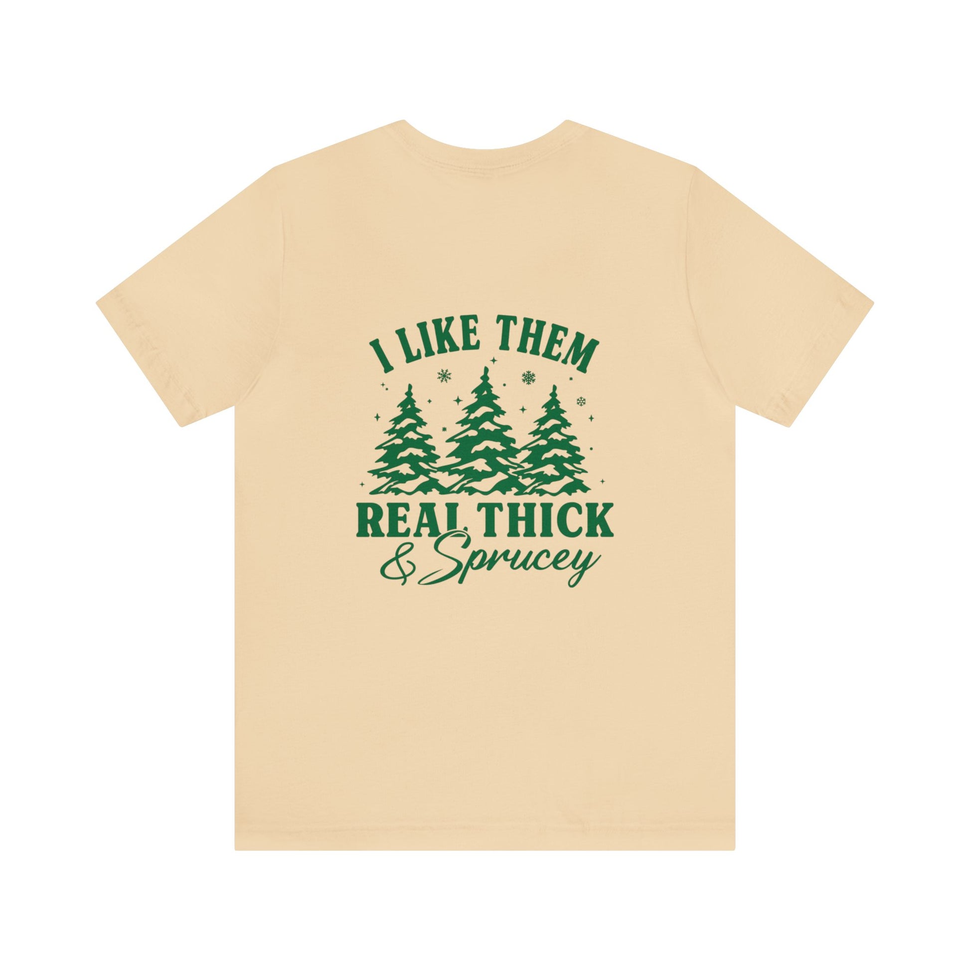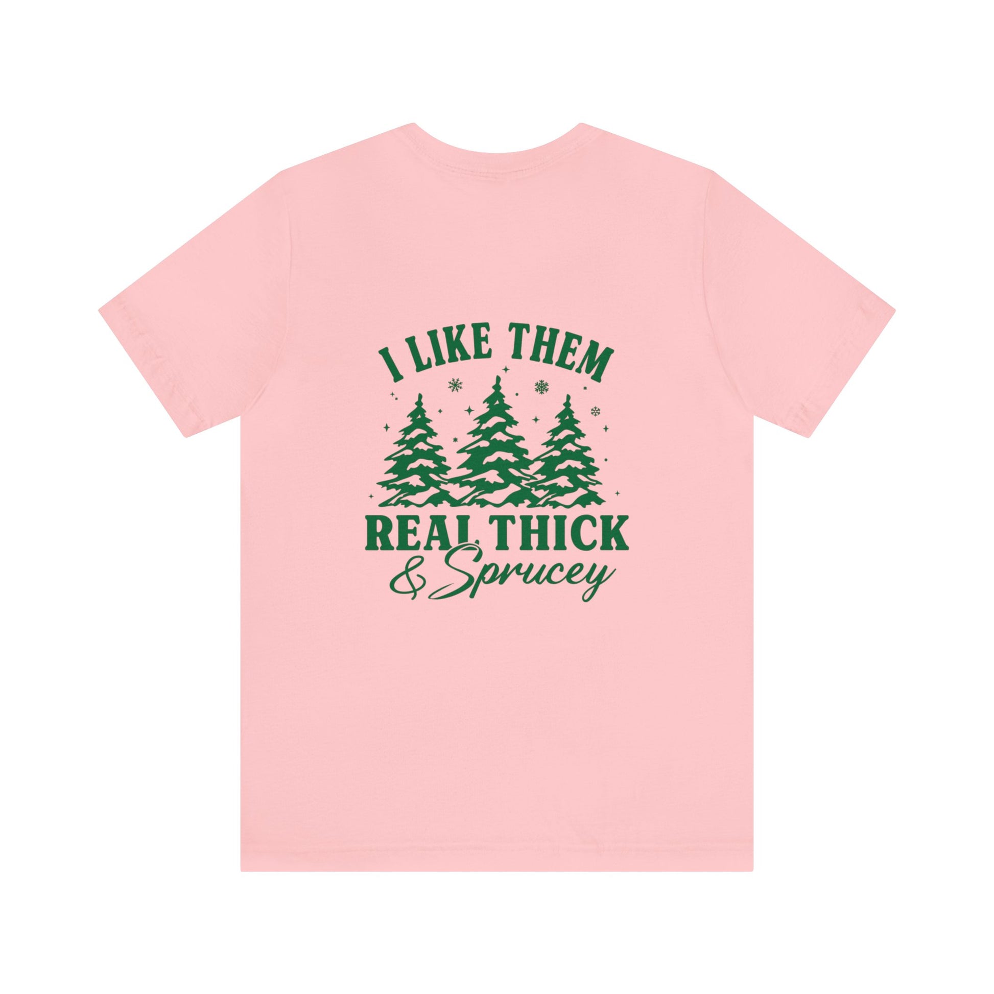 Green Text Prairie Pines with back design Thick and Sprucey Christmas Trees - Unisex T-shirt