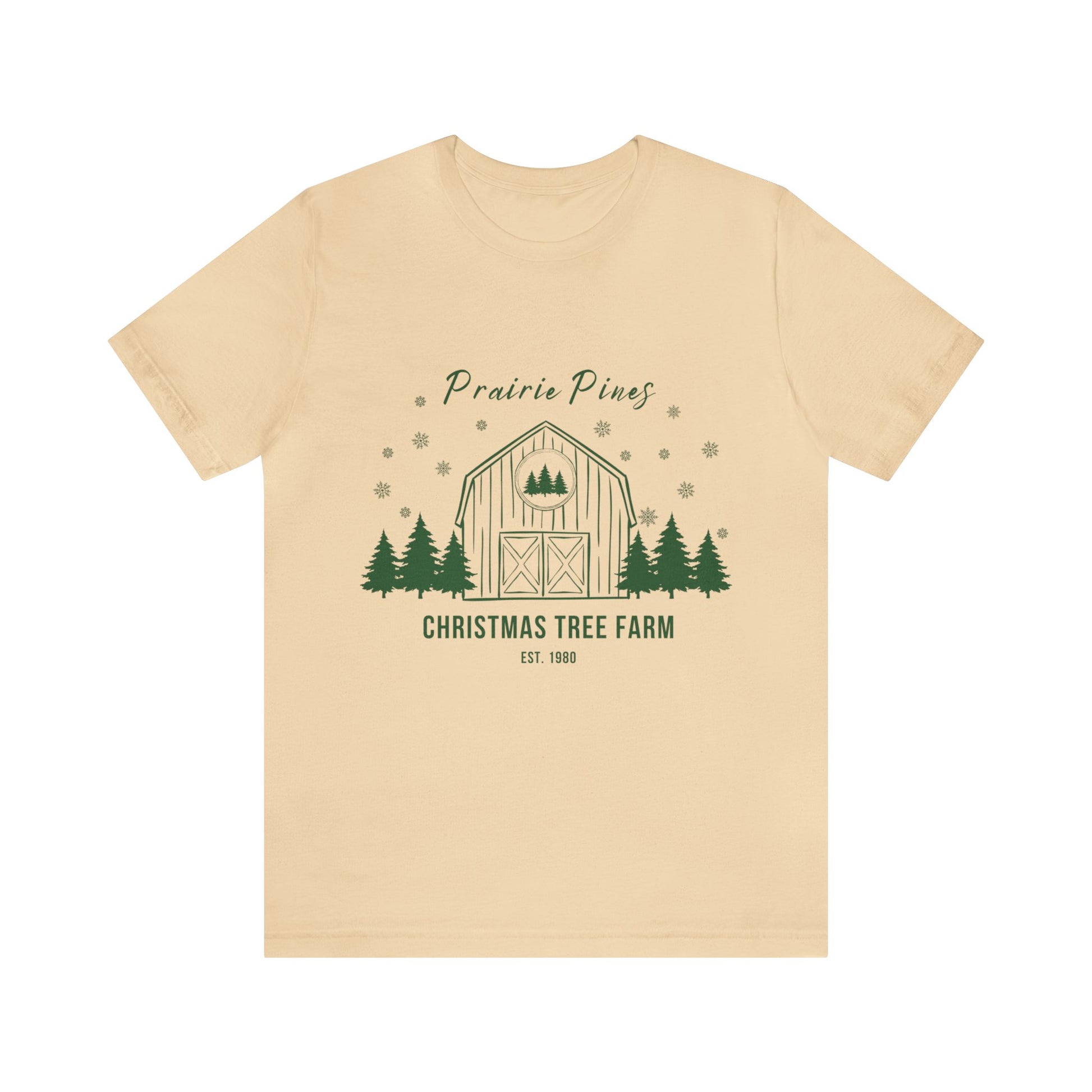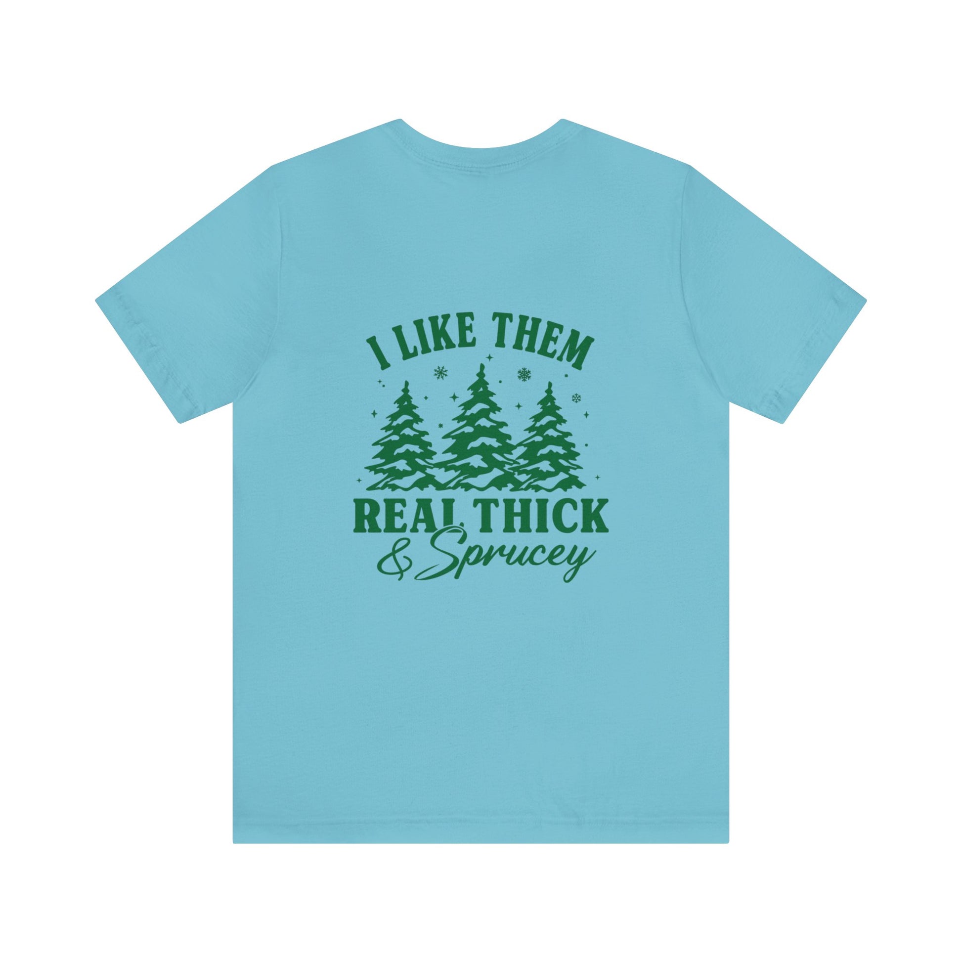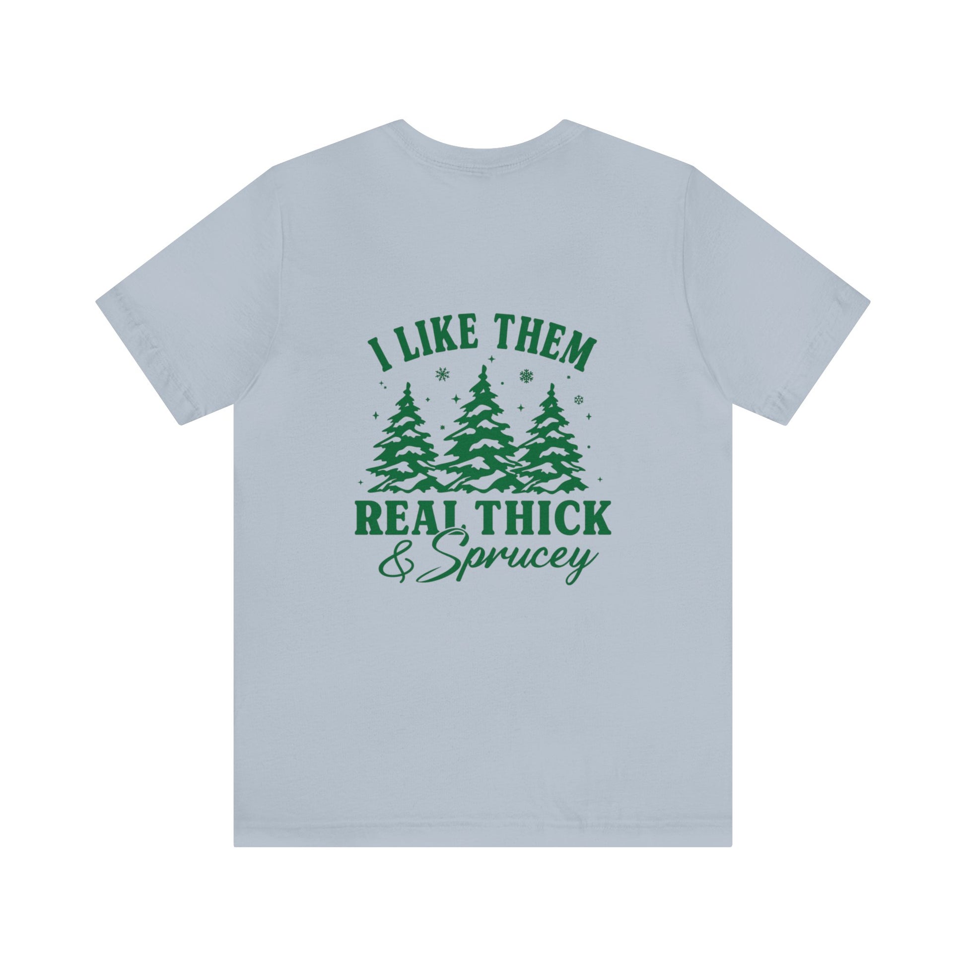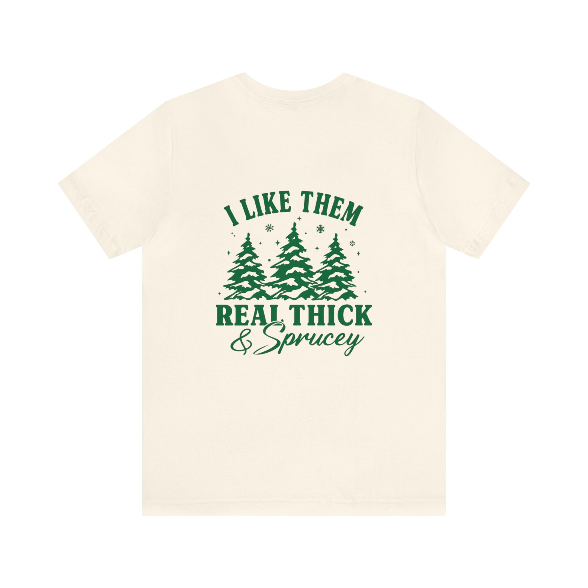 Green Text Prairie Pines with back design Thick and Sprucey Christmas Trees - Unisex T-shirt