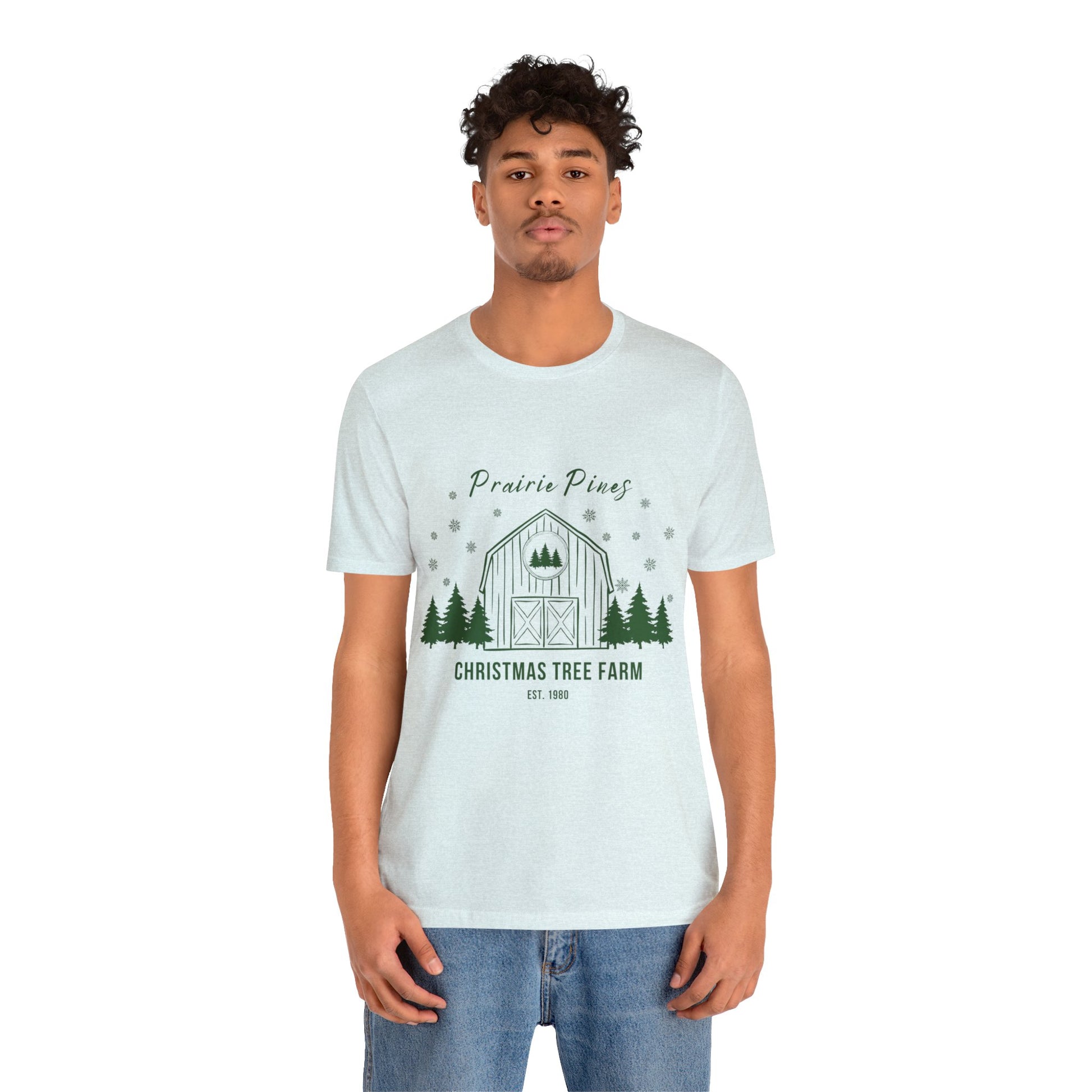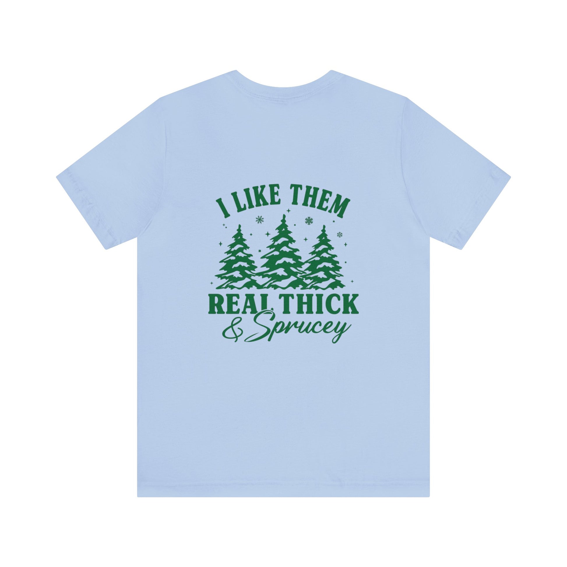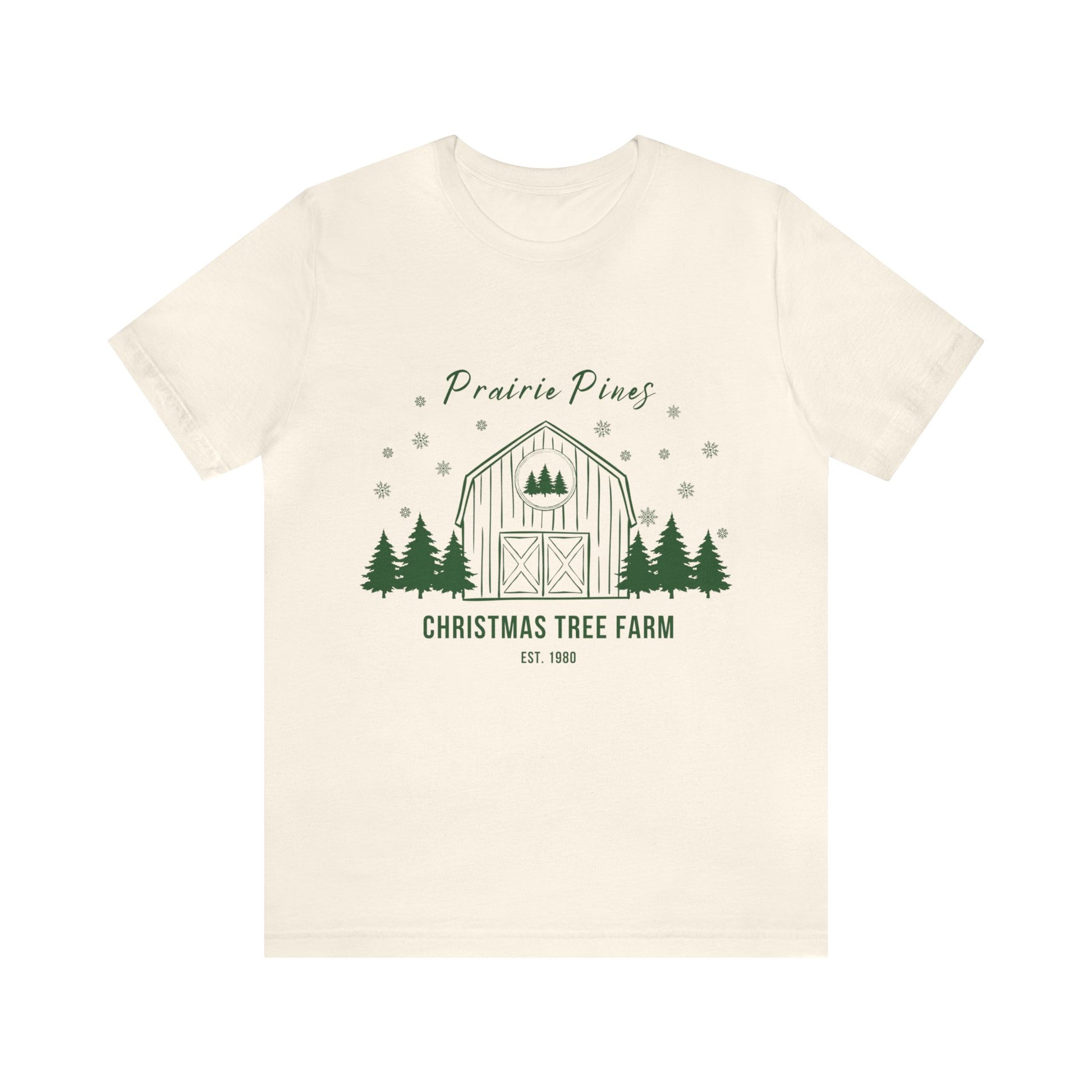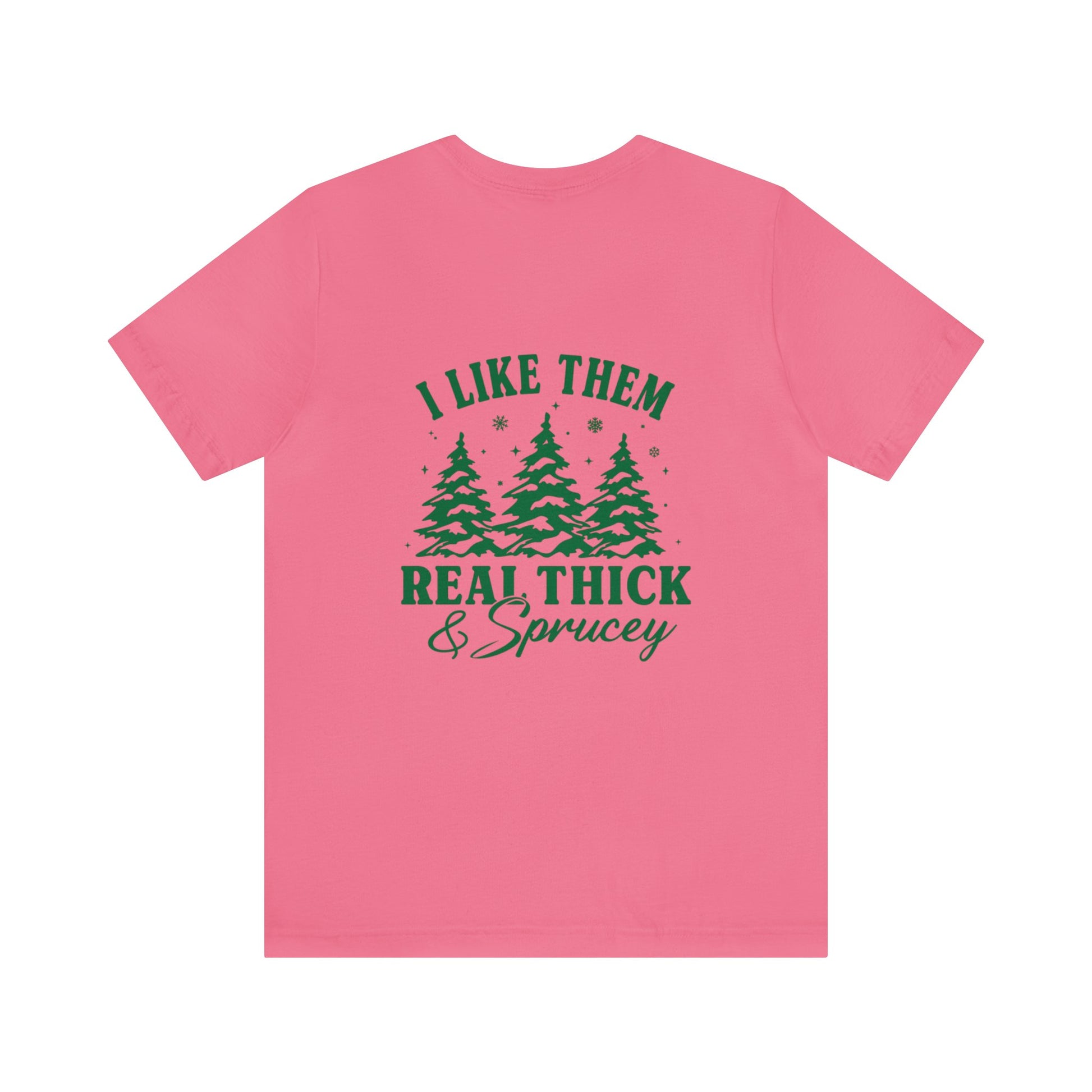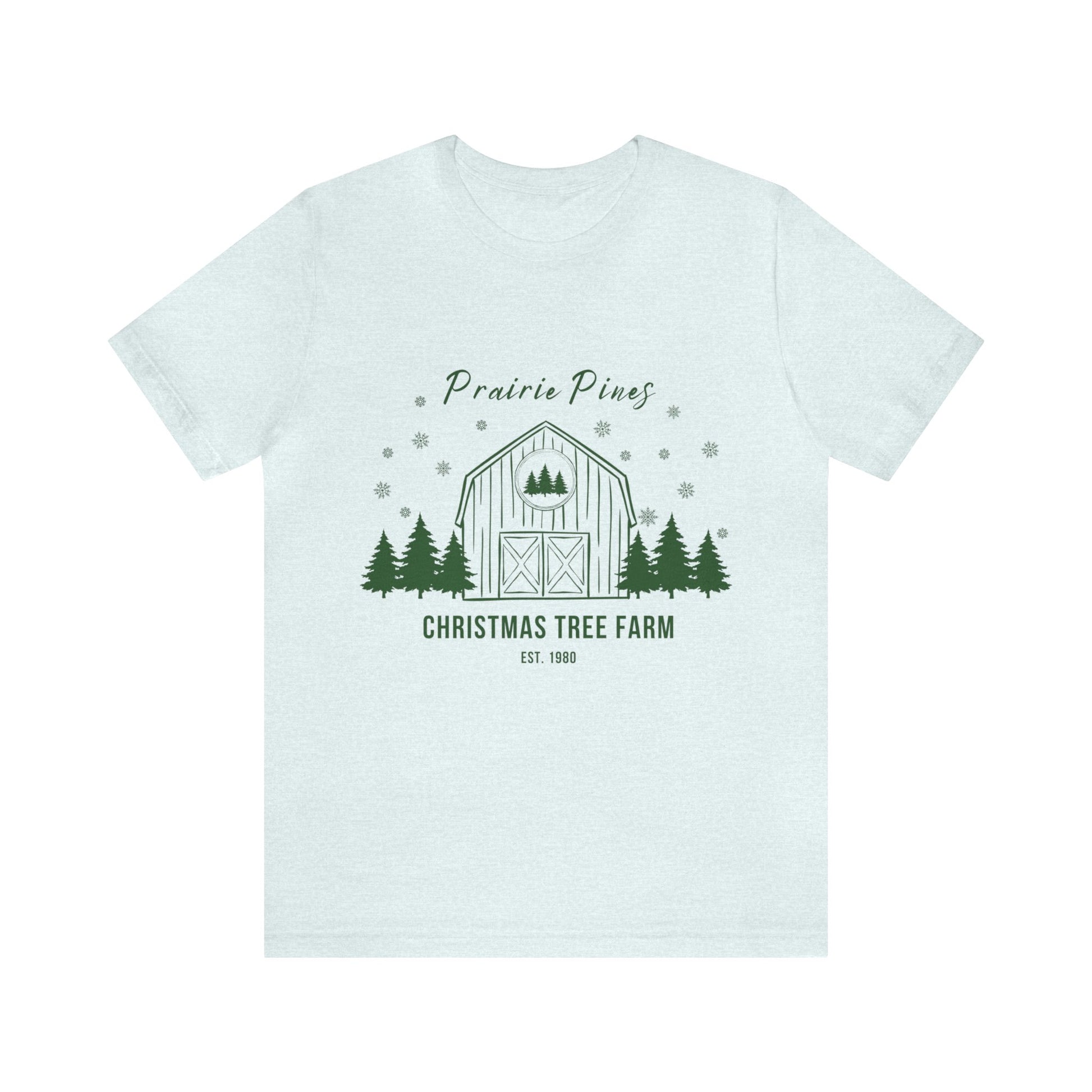 Green Text Prairie Pines with back design Thick and Sprucey Christmas Trees - Unisex T-shirt