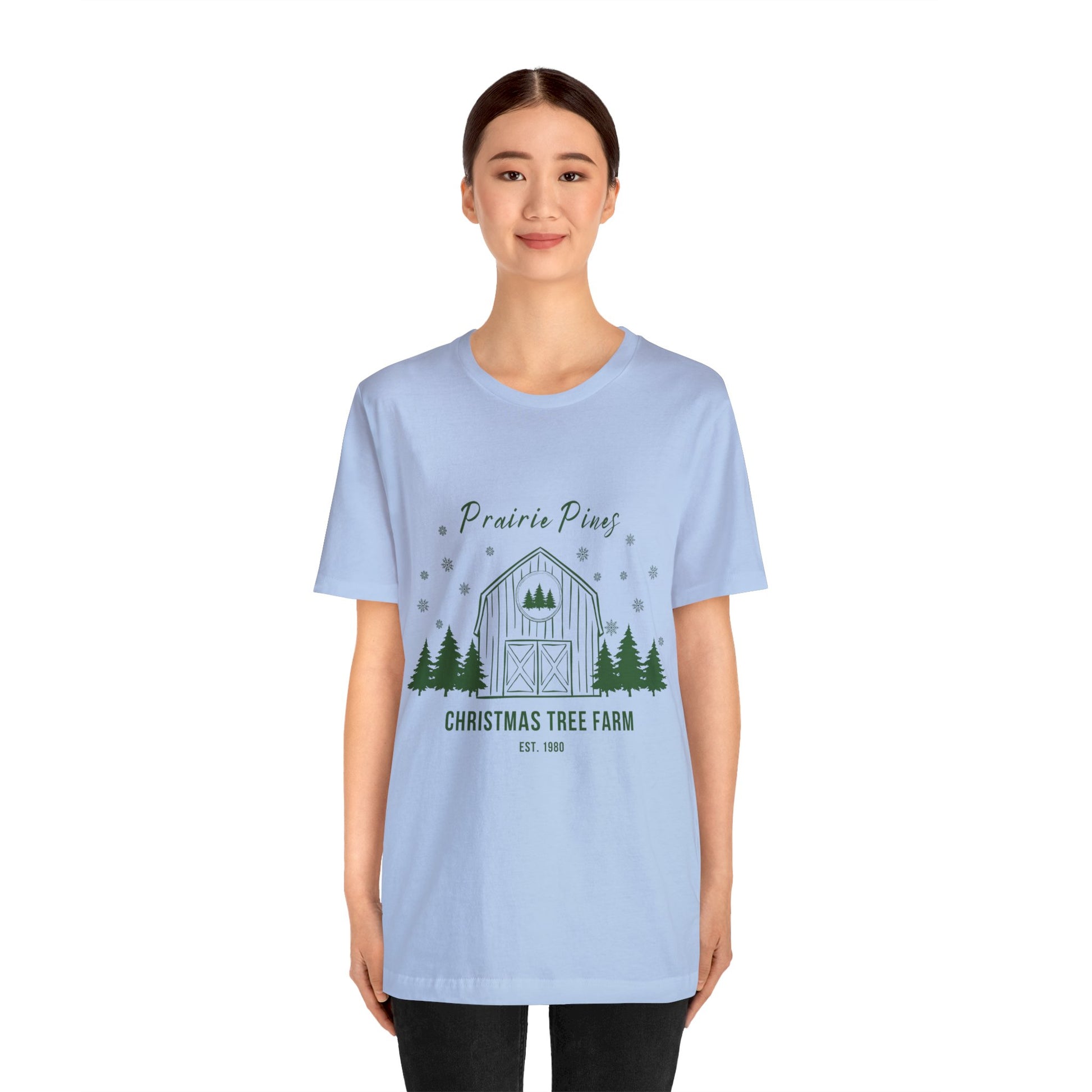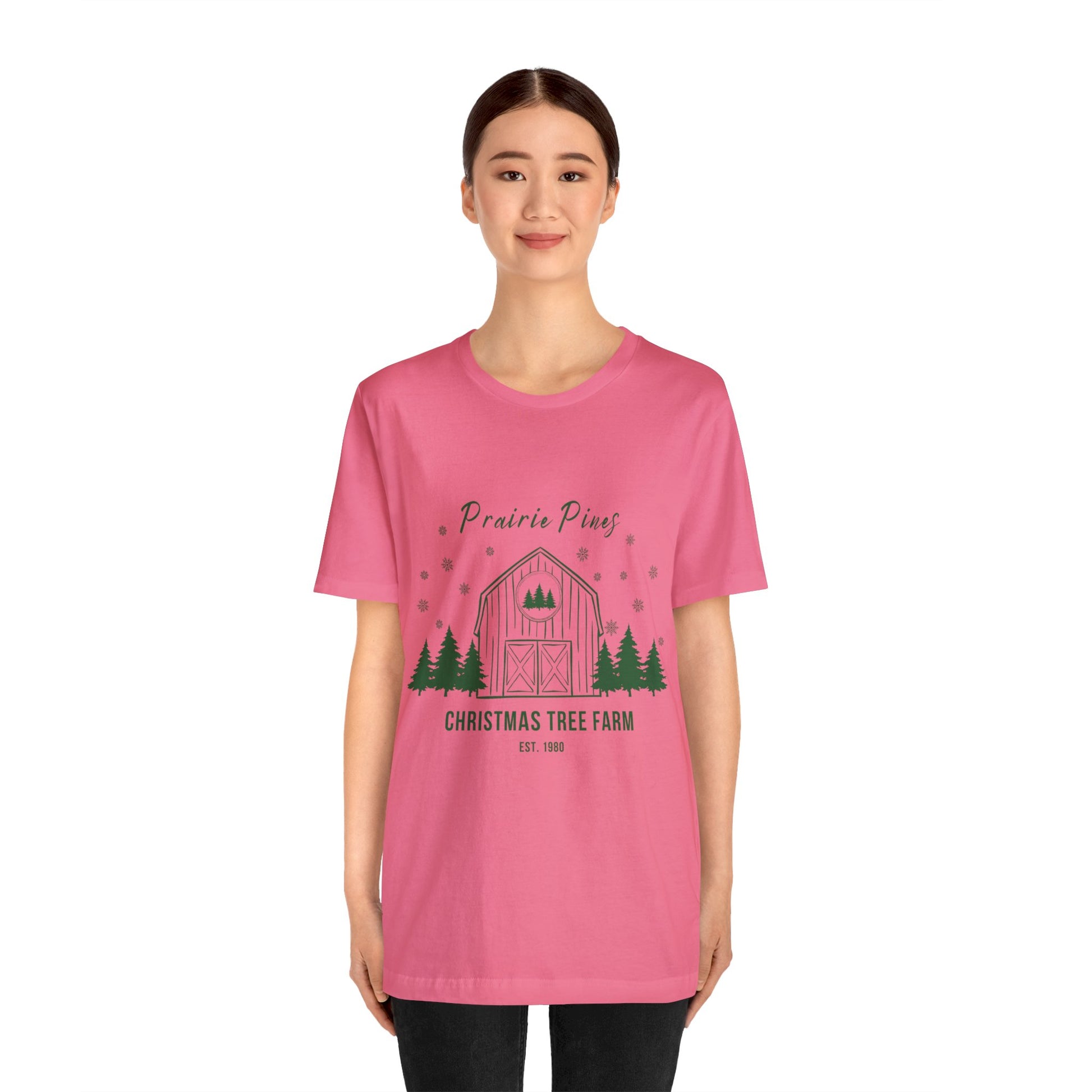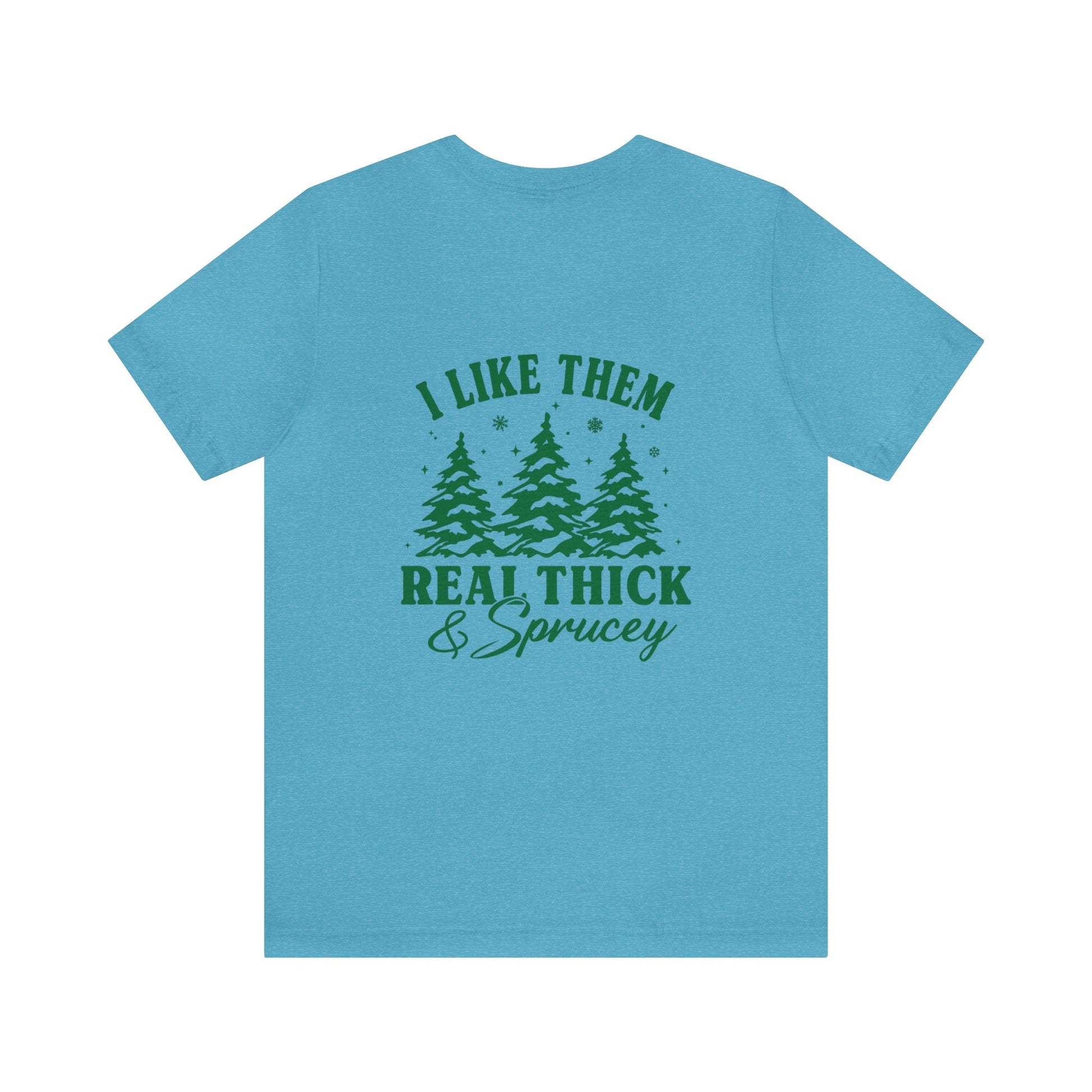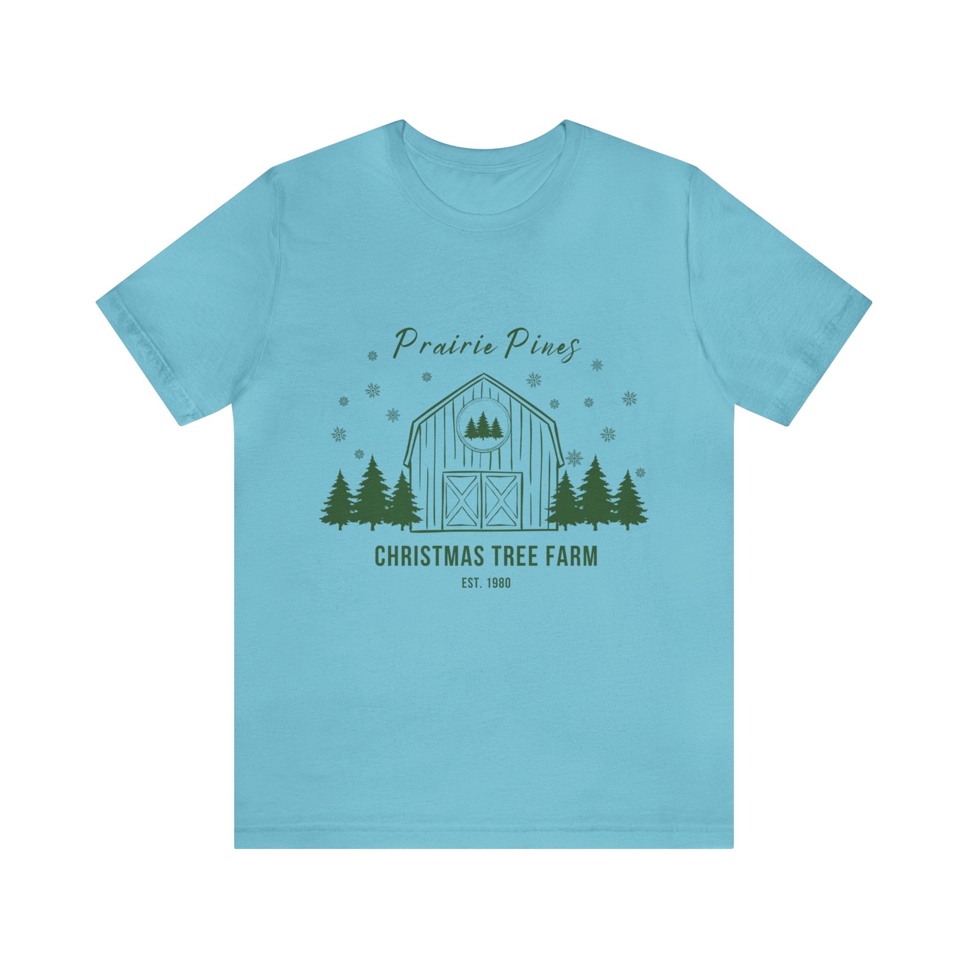 Green Text Prairie Pines with back design Thick and Sprucey Christmas Trees - Unisex T-shirt