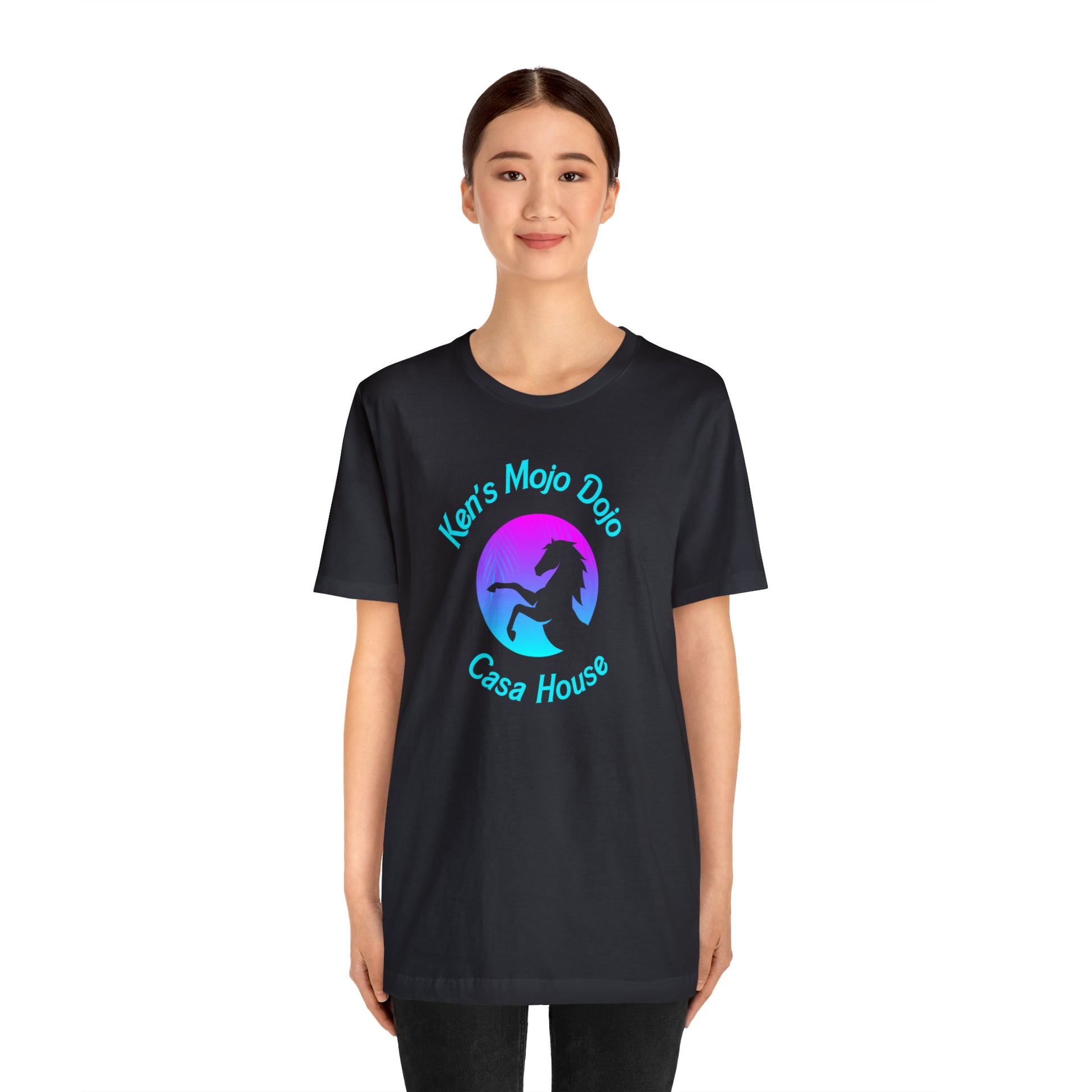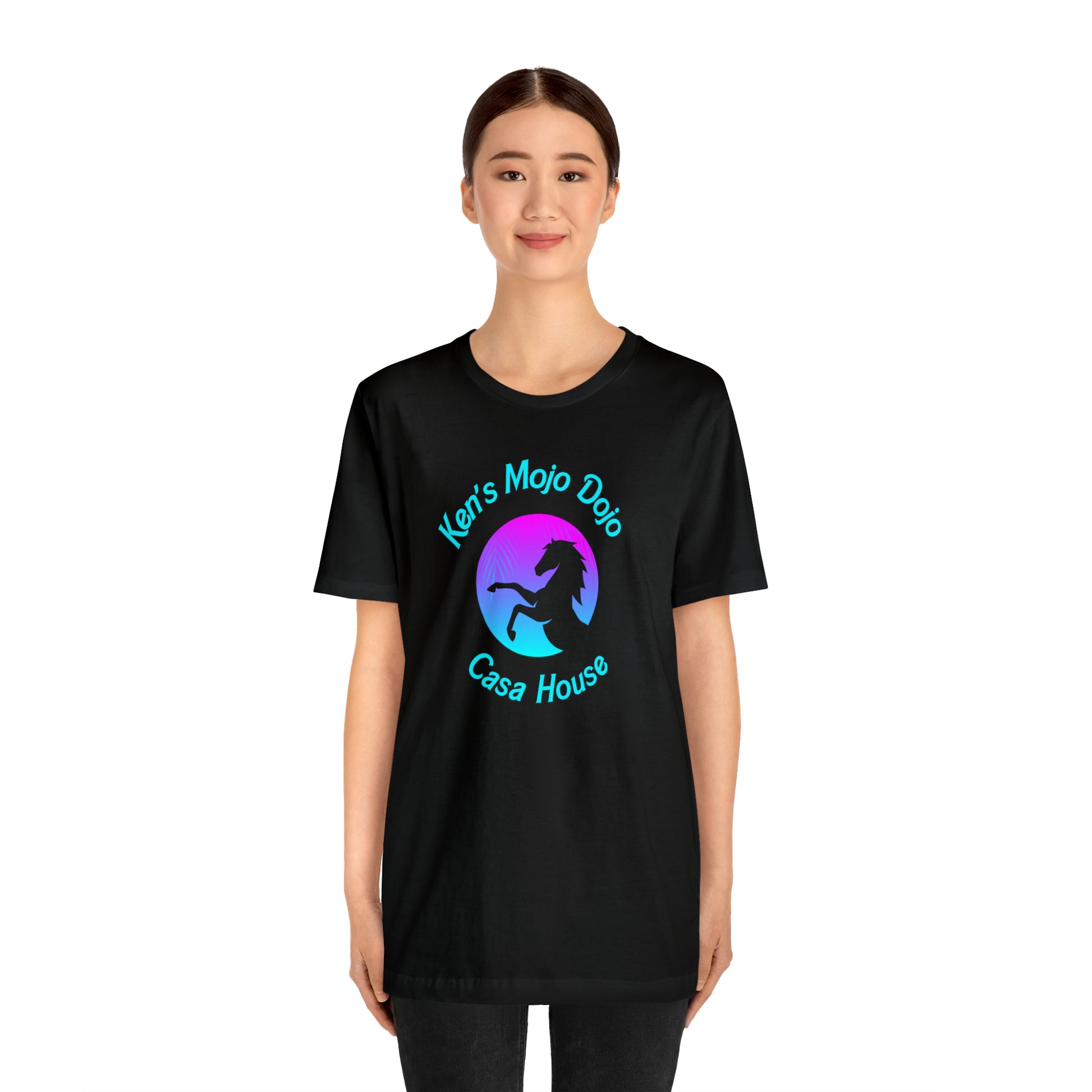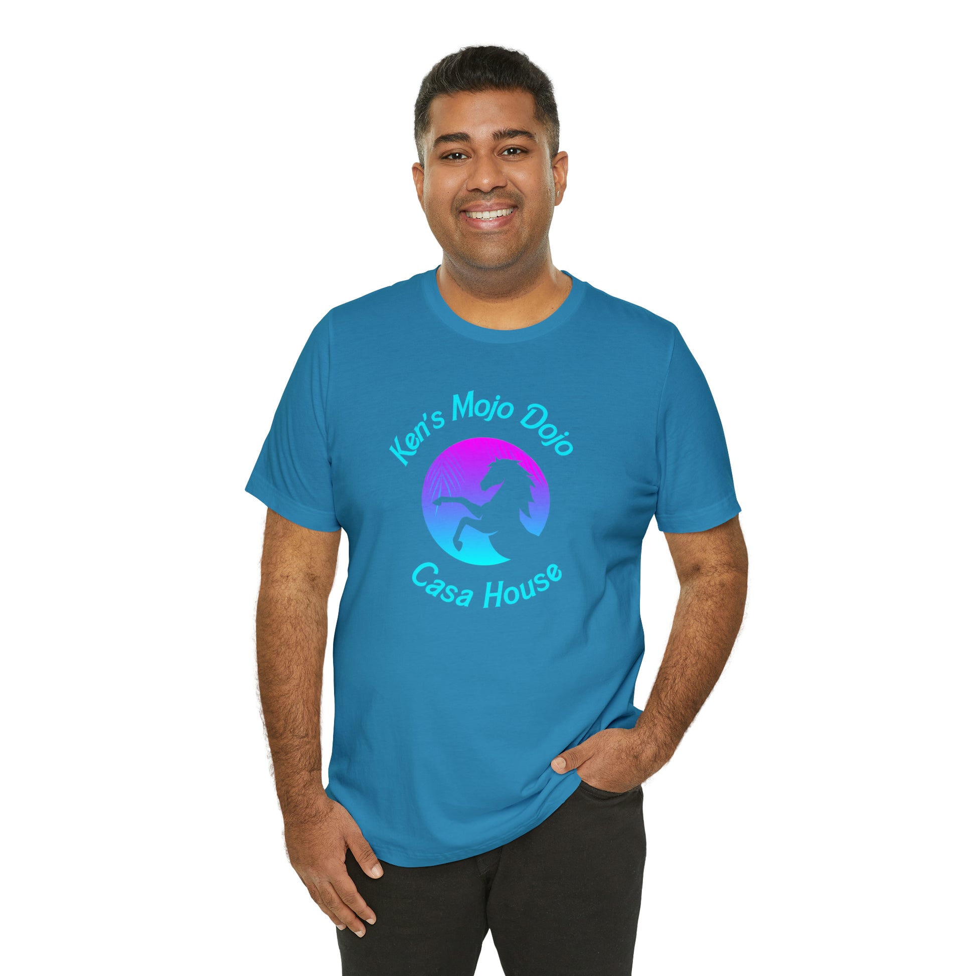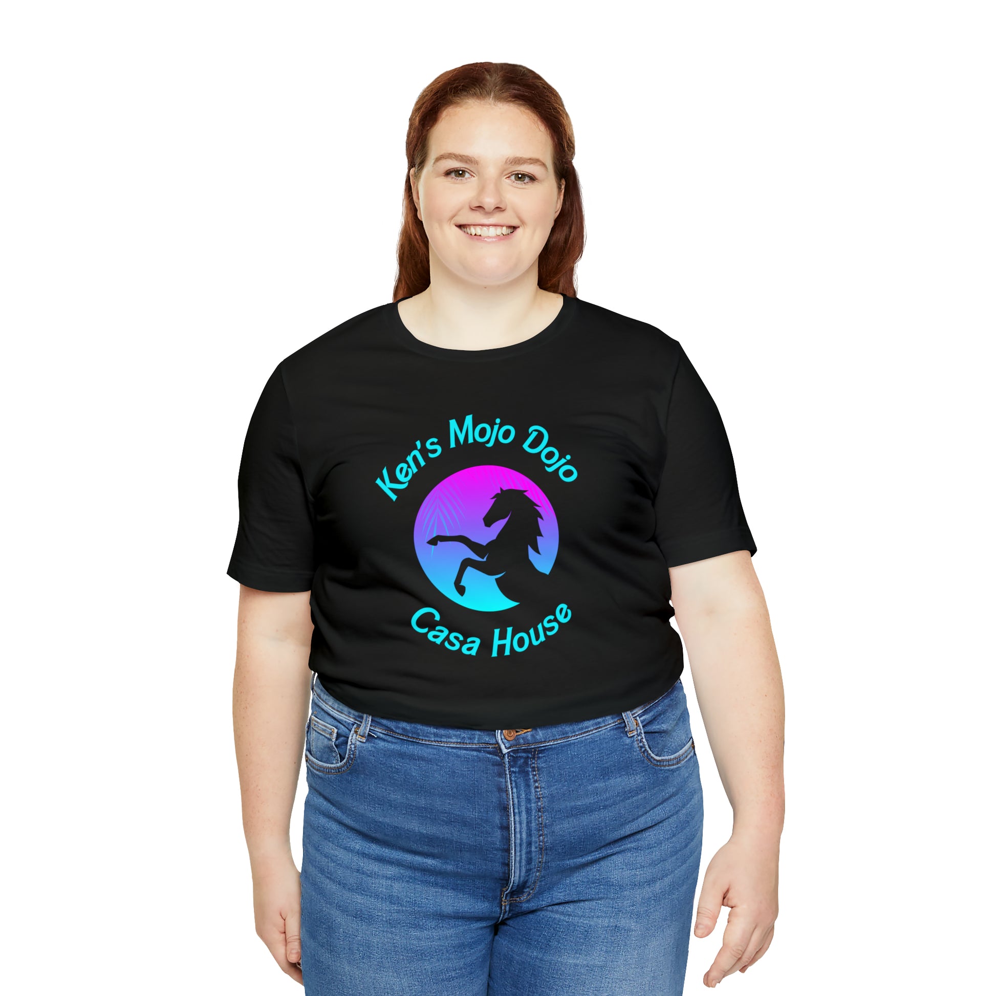 Neon Teal Moon: Mojo Dojo Casa House, Unisex Jersey Short Sleeve Tee
