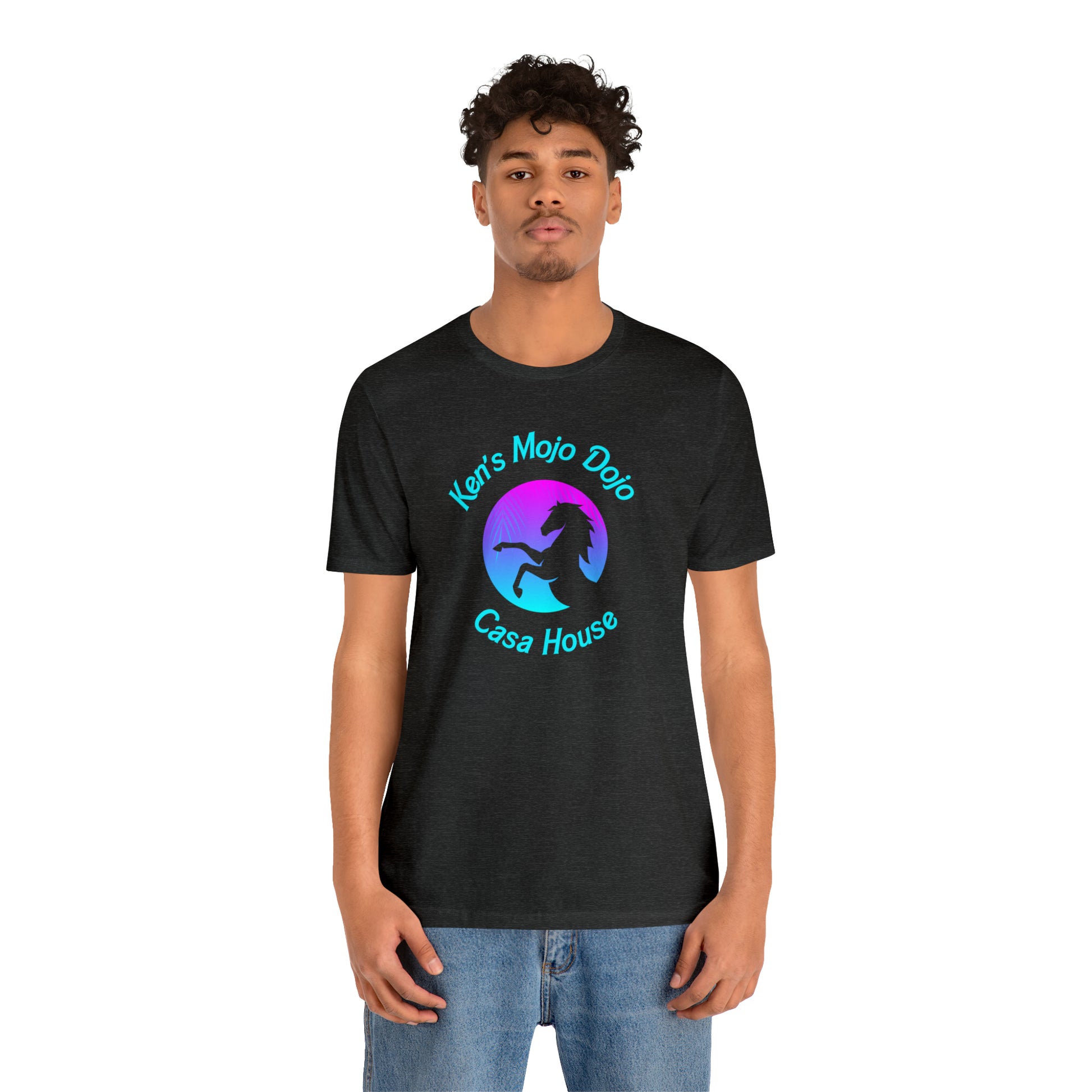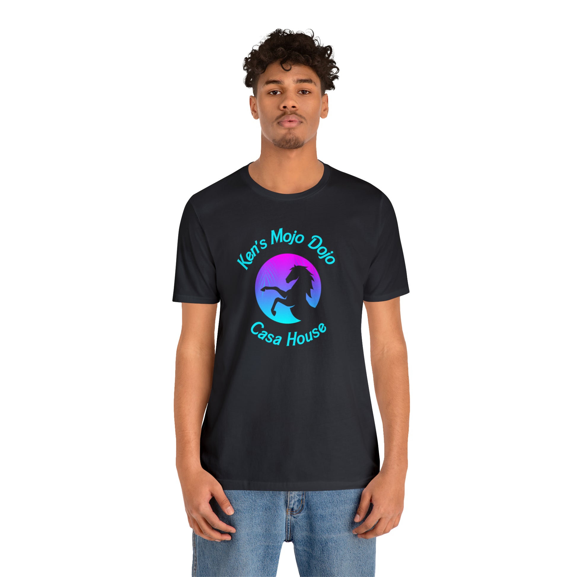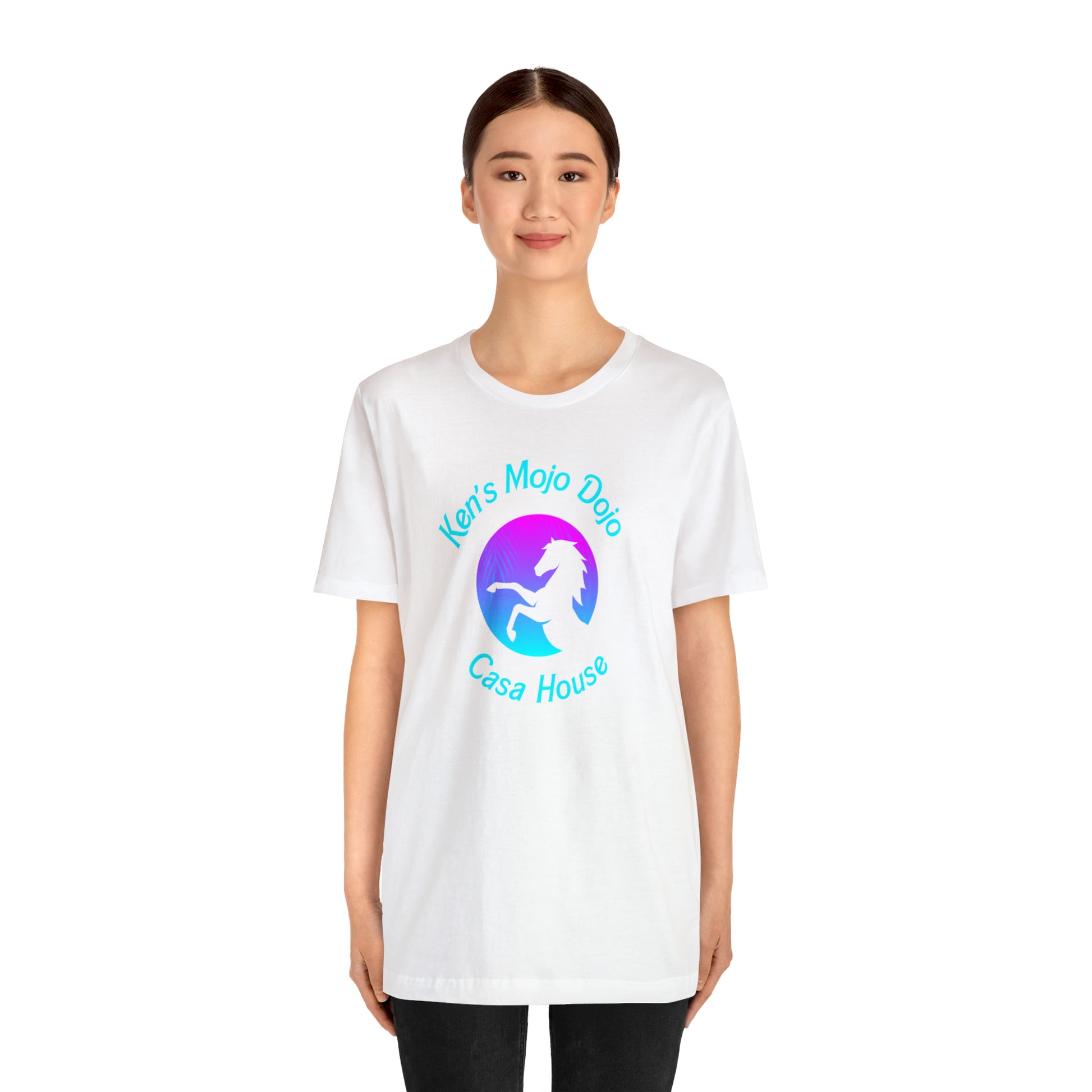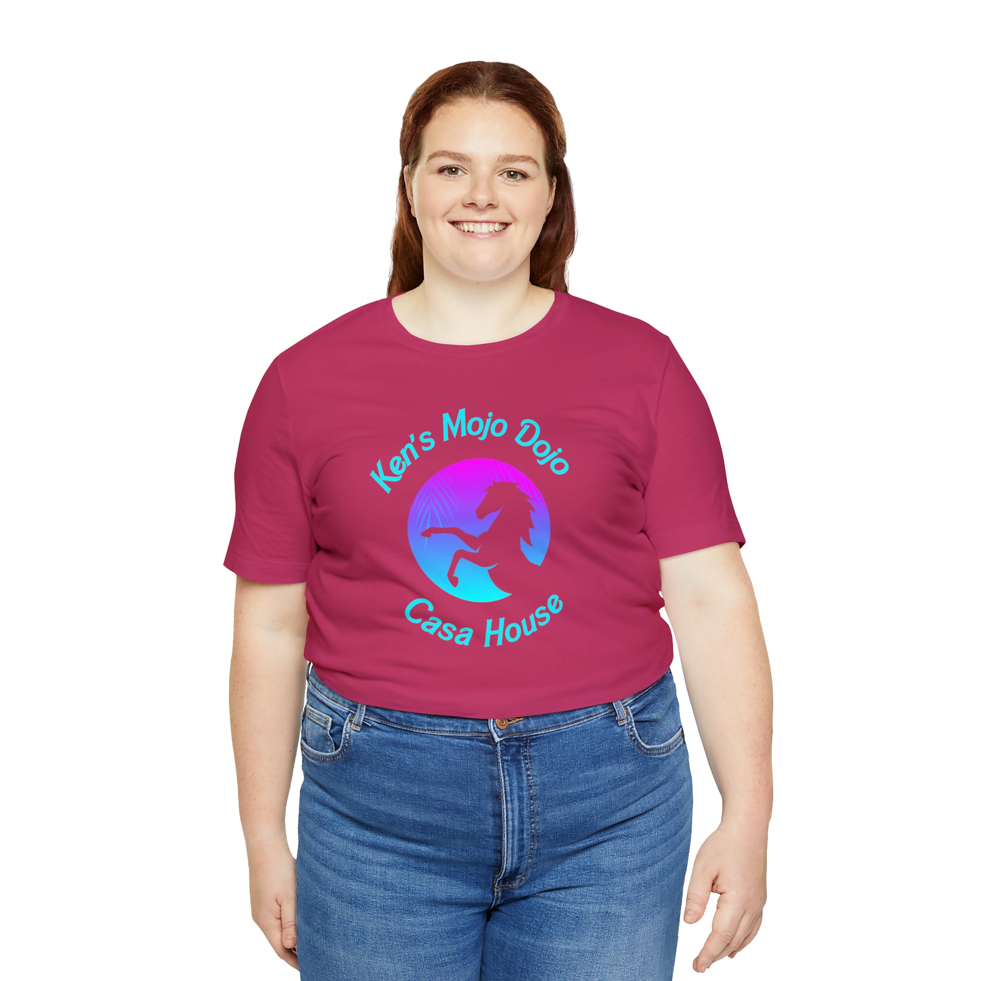 Neon Teal Moon: Mojo Dojo Casa House, Unisex Jersey Short Sleeve Tee